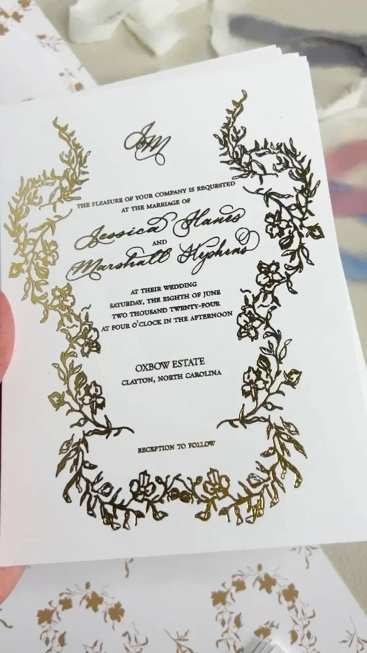 I’ll be with you every step of the way, creating a cohesive and beautiful branding for your wedding or event. Together, we’ll craft luxury invitations and custom day-of details that not only sets the tone but also leaves a lasting impression. Your guests will be wowed by how effortlessly everything ties together, reflecting the elegance and style of your celebration.